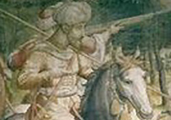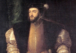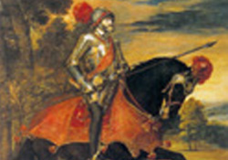 La primera fila de imágenes representan a rey Carlos I (el emperador Carlos V o Karl der Funft). La segunda fila son imágenes de don Juan de Austria, el hijo natural del rey/emperador. Pulse en la primera imagen para una secuencia descriptiva de las seis imágnes, o pulse en cada imagen por separado.