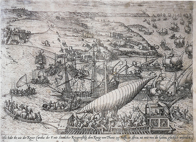1500-1559). Representa la llegada a las costa tunecina de la flota imperial