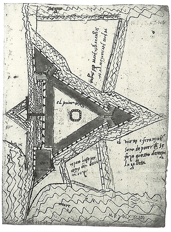 Este es el primer diseño que se hizo del fuerte de la Goleta después de la conquista española de Carlos V. El diseño es de 1539 (Ferramolino, 1539; Simancas, A.G.S.)