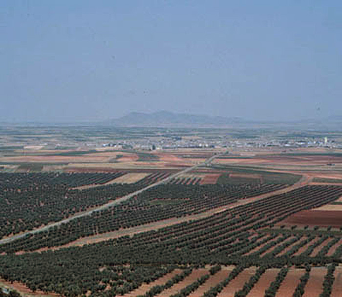 Una vista de una zona occidental de la Mancha mirando hacia el este desde Esquivias. En 2011 esta minúscula aldea de la época cervantina tiene aproximadamente 5.000 habitantes.