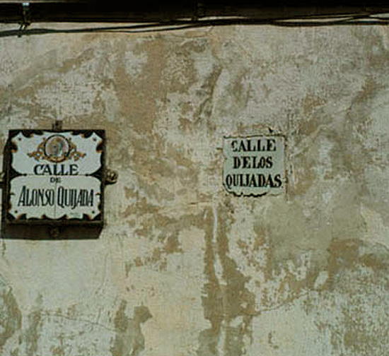 Crédito de la imagen: foto digitalizada de WTL© Comentarios: Dos letreros para la calle en la cual está la llamada «casa de don Quijote» en Esquivias: C/ de Alonso Quijada y C/ de los Quijadas. Estos letreros se hallan en la pared exterior de la casa misma.