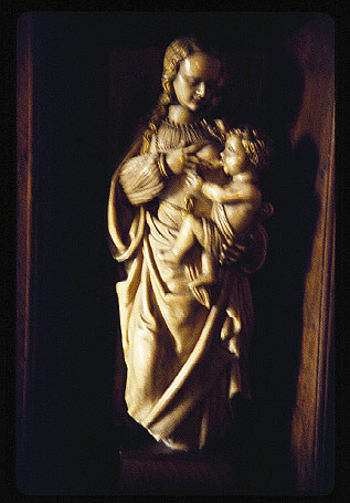 vemos esta bella estatua de Santa María con el Niño Jesús.