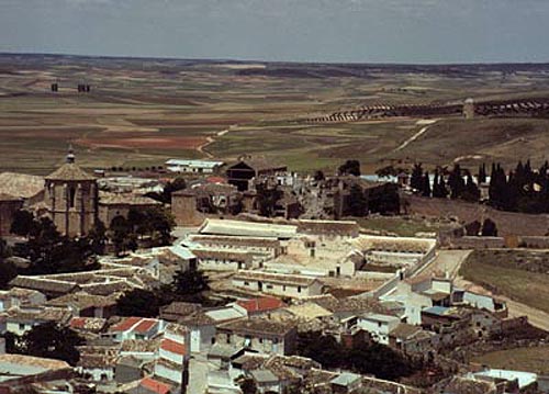 Una vista de la aldea de Belmonte desde arriba, desde una muralla del castillo. Empezamos la visita al castillo de Belmonte mirando el letrero del pueblo mismo. Aquí se ve el pueblo de Belmonte que está situado al pie del castillo. En la antigüedad, el pueblo pertenecía al señor del castillo y estaba bajo su protección. Los aldeanos eran vasallos del dueño del castillo. En las últimas décadas ha crecido algo el pueblo, sobre todo en el sentido de la infraestructura turística. En el siglo XX, el castillo atrae miles de visitantes, pero cuando el profesor fue a verlo en 1990, no era una gran atracción turística e iba muy poca gente a verlo. |