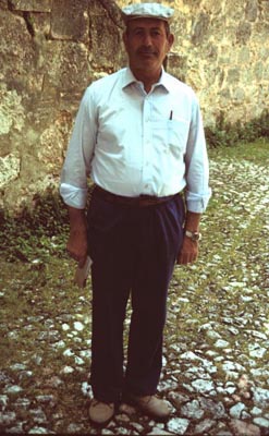En esta foto se ve el mayordomo, que tuvo la gentileza de abrirle las puertas al castillo Belmonte al profesor-fotógrafo en 1990 antes de que se convirtiera el castillo en la fuerte atracción turística en que se convirtió en el siglo XXI.