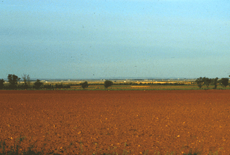 Siguiendo un poco la presentación de la novela, vamos a esperar en las afueras de El Toboso durante el atardecer, pero, como se verá pronto no vamos a entrar de noche sino de día. En fin, aquí se ve una vista de la tarde en el campo cerca de El Toboso.