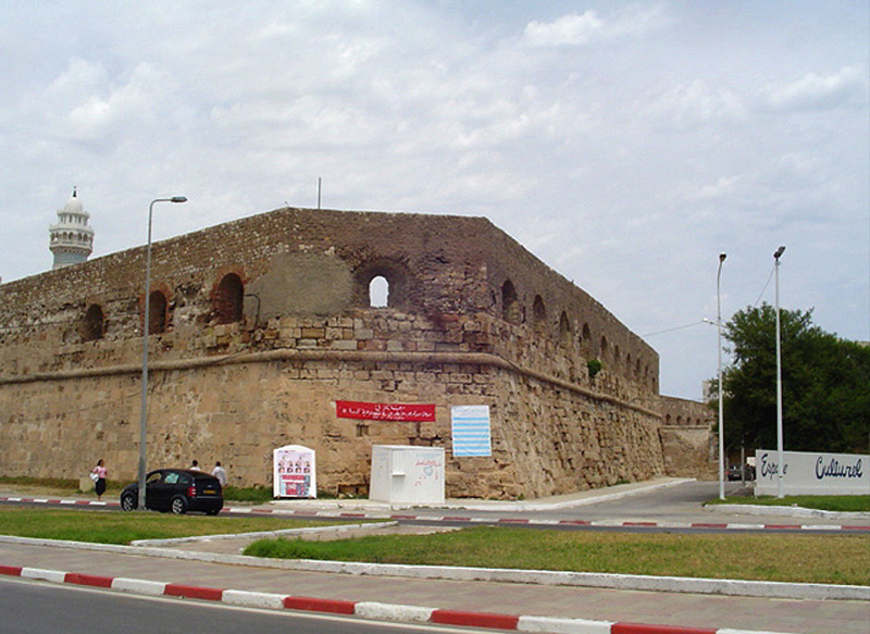 Ahora vamos a dar la vuelta al fuerte. Nos damos cuenta tanto, creo, de lo imponente que fue y que es como de su integración en la vida actual de los ciudadanos de La Goulette. Los carteles fijados en la muralla del fuerte anuncian actos culturales del verano y del otoño de 2006. Por tres de los cuatro lados del fuerte no hay casas pegadas a la sombra de la fortaleza.