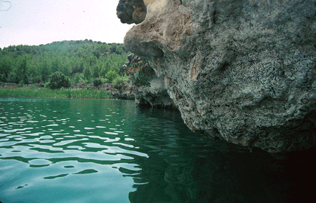 Así que, en vez de entrar en una caverna al lado de esta laguna, me di la vuelta por 180 grados y miré hacia donde está la Cuva de Montesinos, la cual está en los montes que se ven en esta foto. Vale la pena recordar que se habla de la leyenda de «la dueña Ruidera y sus siete hijas» en el capítulo 23 de la Parte II. Para ver este capítulo, favor de pulsar aquí => CAPITULO 23. Se puede referir también a la pág 578 en la edición de Juan de la Cuesta.