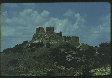 He aquí el castillo en ruinas que se vislumbra encima del monte en la foto anterior.