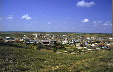 Una vista de Campo de Criptana desde la colina donde están los molinos.