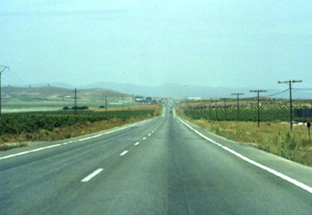 Camino de la aldea de Puerto Lápice con paisaje típico de La Mancha cerca de Toledo.