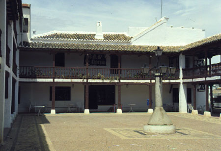 Don Quixote y Sancho Panza no llegan a la aldea, pero si hubieran llegado a ella seguramente habrían buscado alojamiento y aventuras en una venta como ésta que está en el pueblo.