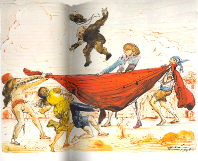 ![]() Grabado de Salvador Dalí en la edición de Planeta, Barcelona (2004), 80-81. |