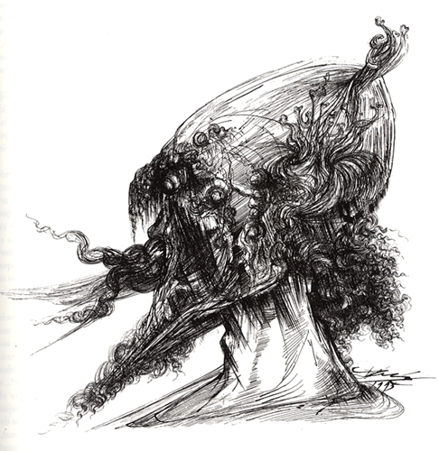- Ilustración de Salvador Dalí (Planeta, 2004, 111). A nuestro ver, este es uno de las imágenes más expresivas de Dalí de entre sus ilustraciones del Quijote. En la edición de Planeta no se dice específicamente que esta imagen se haya puesto entre las páginas del capítulo 20.