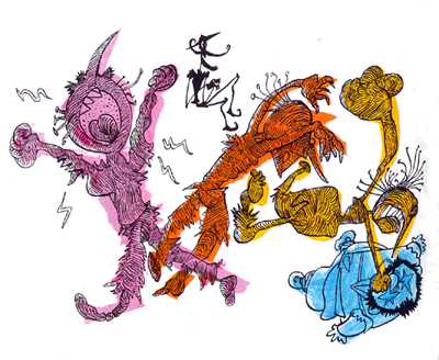 Sancho Panza, que de tal modo vio parar a su señor, arremetió al loco con el puño cerrado, y el Roto le recibió de tal suerte que con una puñada dio con él a sus pies ... (Lámina de Rep en la edición de Castalia, 2010, pág. 160; editor José Manuel Lucía Megías). |