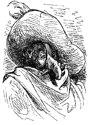 - El dibujo del escudero de la nariz monstruosa por Gustave Doré (la