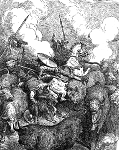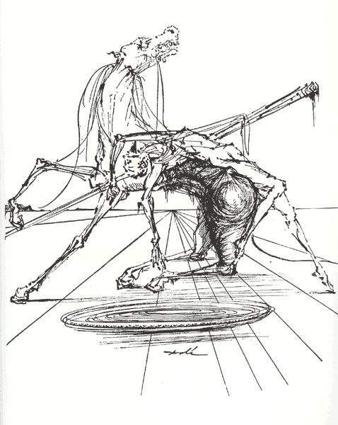 Salvador Dalí: don Quixote y Rocinante molidos después del encuentro con los toros (Barcelona, II, 1965: 368). |