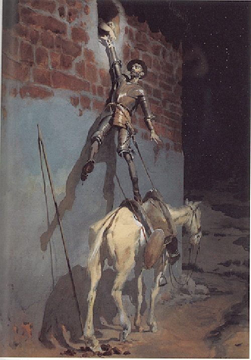 - Cuando Maritornes se burla de don Quixote, éste está suspendido