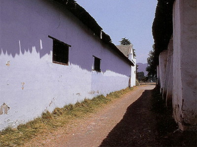 Comments: Here you see a path between two of the hacienda's buildings in a "before" and "after" restoration state. The view angle is somewhat different, but the general setting is the same.