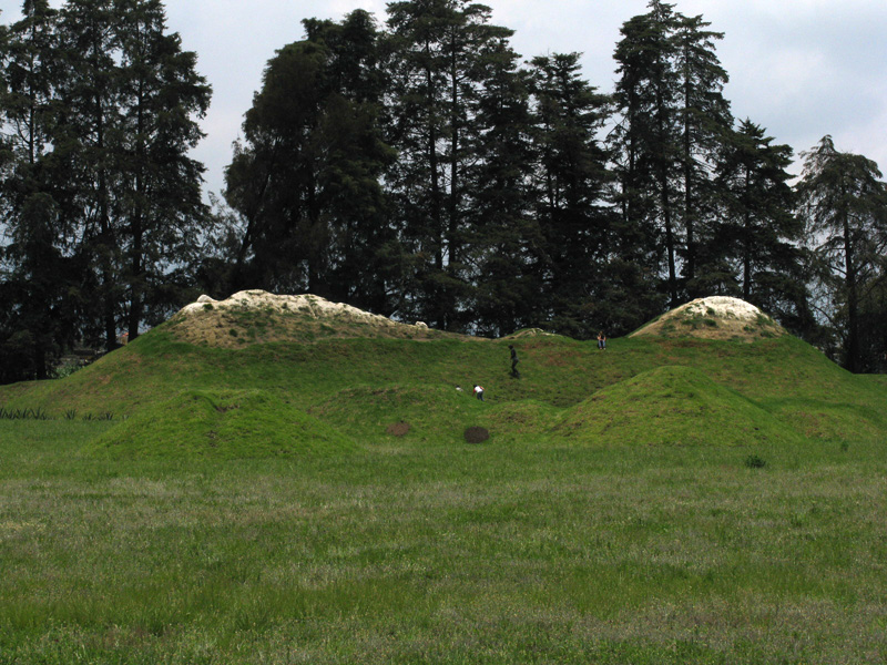 Source: Photographs by WTL© (2009) on site at Panoaya amusement park. Image: This outdoor scale model give us an idea of the relationship between legendary twin volcanos, Iztaccíhuatl (left) and Popcatépetl (right). For a description of the legend, see: => Cuernavaca #18. Comments: In this model we can see in the snow-covered series of peaks on the left that one can image, starting on the far left, the head, breast, stomach, legs, and feet of a woman lying on her back. Then, with a fumarole of smoke and steam rising from the peak on the right, one can image the distraught Aztec lover Popo standing watch over his lady stretched out before him in prone position. Additional images: For image of the volcano on the right, see: => Paso de Cortés and Popocatépetl. |