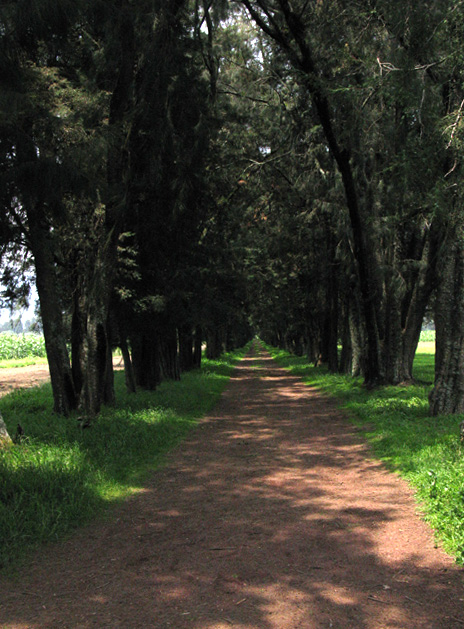 Source: Photograph by WTL© (2009) on site at Panoayán. Image: This photograph shows one of the ancient colonial entrance roads leading to the main hacienda at Panoayán--not directly part of the amusement park. It suggests the rural, bucolic, peaceful, natural environment in which the young Juana Inés lived for several years. |