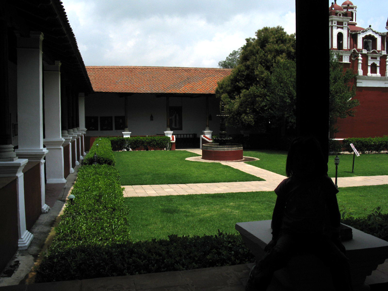 Source: Photograph by WTL© (2009) on site at Panoayán. Image: Here's the gracious interior patio of Panoayán's main hacienda residence, where Sor Juana spent her early years. The hacienda's own chapel is in the building in the background right. Humanities question: Knowing that this hacienda was established in the middle of the 16th century, that it grew over a couple of centuries, that it fell into ruins at the end of the 20th century, and that it has been restored at the beginning of the 21st century, give a description of the features you see in this image. For example, what is "Spanish colonial" about this scene? And, what does its colonial nature have to do with Sor Juana? |