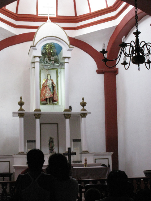 Source: Photograph by WTL© (2009) on site at Panoayán. Image: Here we see the interior of the hacienda's chapel. Comments: Throughout Latin America, and, also in Spain and Portugal, it was customary for the great haciendas to have their own Catholic chapel and to staff it with the hacienda's own priest. Sor Juana experienced this particular religio-social institution. This room has been restored to the condition it was in before it fell into near ruins, and the furnishings are, for the most part, original or like the originals. Notice the architectural style with the stark white walls, the relatively simple archangel in the tabernacle above the very simple altar, which, by the way, has been moved forward from the back wall according to the change made in Catholic Churches during Vatican II (1962-1965). According to the competent tour guide during the professor-photographer's visit, Sor Juan repaired in secret to this chapel to teach herself how to read by devouring the books in her grandfather's library. Humanities question: Taking into consideration that Sor Juana is considered Latin America's foremost writer and intellectual of the Baroque period, what do you think about the relationship between her life and works on the one hand and the style and atmosphere of this chapel on the other hand? |