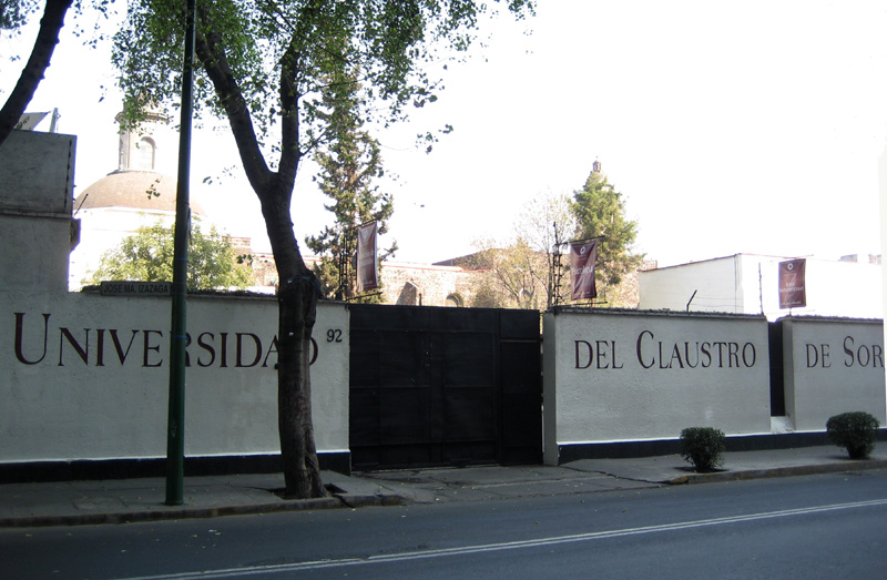 Source: WTL digital photograph on site in Mexico City, D.F. Image: Here you see the outside wall on the western side of what was once the Convento de Santa Paula in which Sor Juana lived as a nun. Now, as you see, the convent, which later was called the Claustro de Sor Juana, has been turned into an urban university called Universidad del Claustro de Sor Juana. It is a public secular university. The address is Izazaga, 92, in Mexico City's historical hub. The university's homepage is http://www.ucsj.edu.mx/: => UCSJ. |