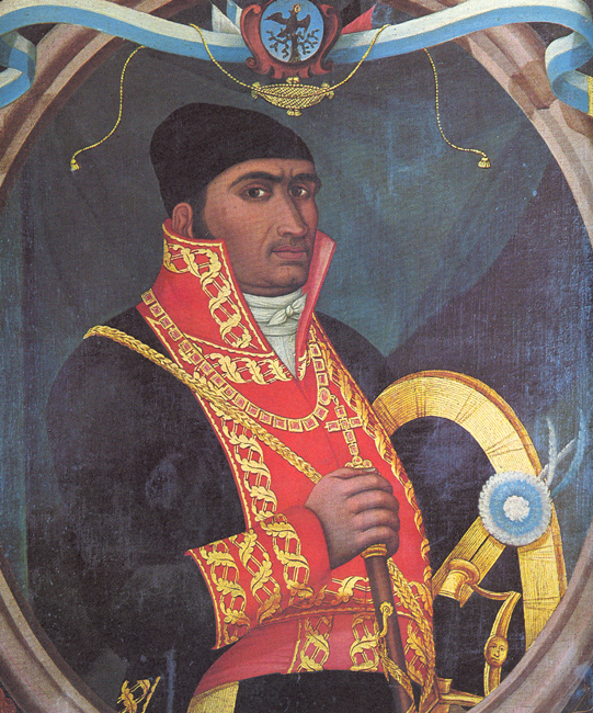 Source: Bradley Smith, Mexico: a History in Art. Garden City, N.Y.: Doubleday and Company, 1968, p. 204. Image: "Father José María Morelos y Pavón", anonymous, 1812. Oil on canvas in the Museo Nacional de Historia, Chapultepec Castle, Mexico City Questions: Identify the style of this painting. What elements does the painter use to characterize Morelos? What leads one to believe that it is a Latin American painting from the independence period? Was this painting done during Morelos' lifetime? Why is this last issue relevant? |