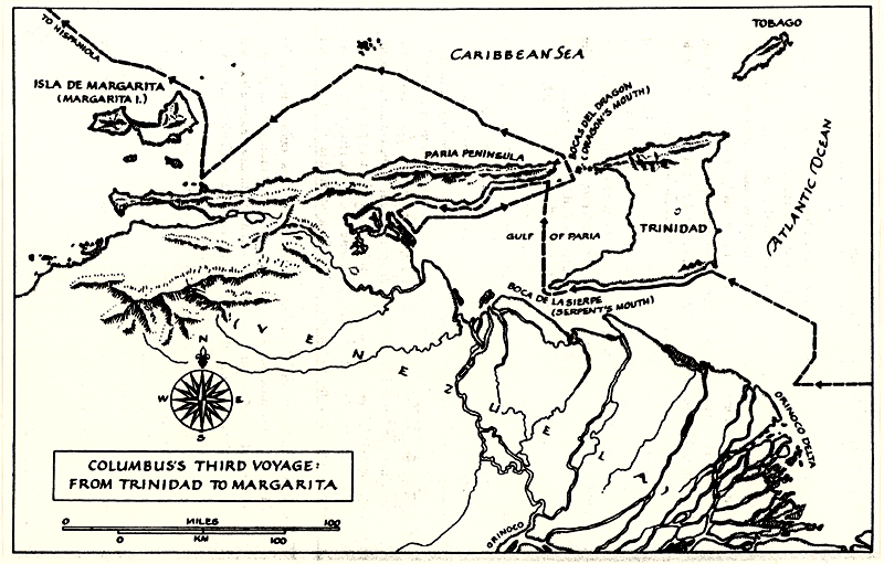 Source: WTL course files. Image: This drawing depicts a good estimate of Columbus's third voyage from the island of Trinidad to the Venezuelan coast, the mouth of the great Orinoco River, and leaving South America at the Isla de Margarita. Question: How did Venezuela get its name? |