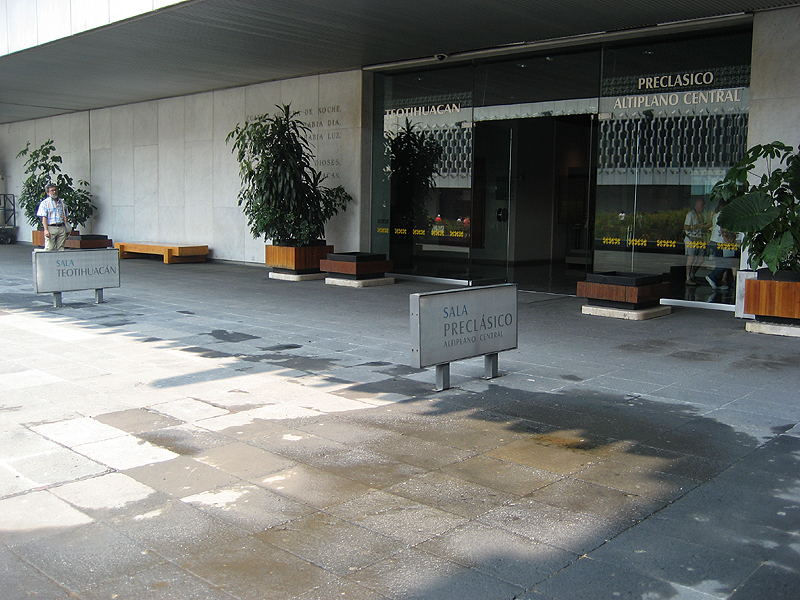 Notes: This is what the entrance to two exhibition rooms looks like. The Teotihuacan room is on the left of the entrance, and the room dedicated to the art of the pre-classic civilizations (2300 BCE - 100 CE) of the central highlands is on the right.