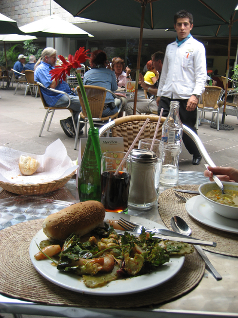 Notes: Here is the vegetarian meal the professor-photography ordered and was about to eat when he visited the museum in 2007. The very competent mesero is approaching. I ordered in Spanish, but the mesero's English is excellent. Dessert is next!