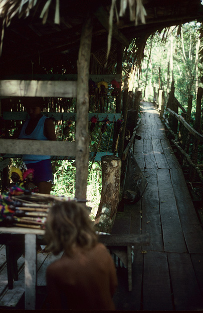 Comment: Following the narrow raised boardwalk, there ws this small, covered shelter with some local handicrafts for sale. The rain forest is beyond...