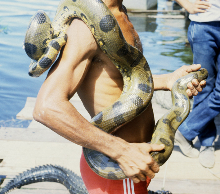 Source: WTL photograph© on site in the Amazon River Basin. Image: a man holding a small anaconda on a stop in a tiny community along the Amazon River. For a photograph of the professor-photographer doing the same thing, see: => Amazon #8a. For an image somewhat like this one that was featured in the Opening Slide Show of HUM 2461, see: => Opening Show #1, Opening Show #2, and Opening Show #3. |