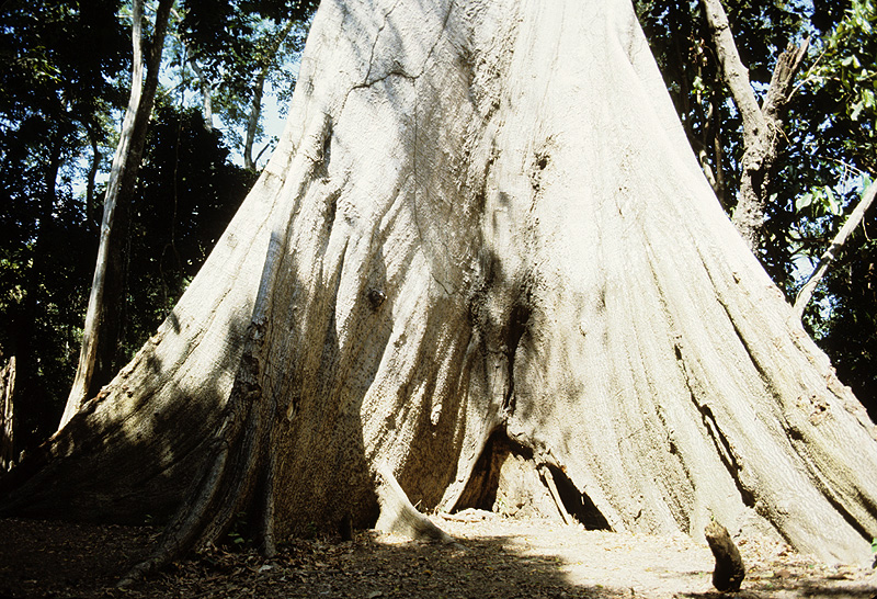 Source: WTL photograph© on site in the Amazon River Basin. Comments: Here is a view of the giant trunk of the same tree we just saw in #11. The online World Wildlife Fund (WWF Global) says this about the kapok tree: "Just try to find two trees of the same species within a few minutes in the Amazon rainforest, and the term ‘massive biodiversity’ will take a new meaning: you keep walking across different species. Just the western part of the Amazon River Basin has the highest diversity of trees in the world. Tropical rainforests set records in biodiversity: anywhere between 40 to 100 species of tree can be found in a 1-hectare plot of land. Take the Cocha Cashu Biological Station in the Amazon floodplain forests of Peru, as an example. There, at least 1,856 species of higher plants have been discovered. The Amazon is home to as many as 80,000 plant species from which more than 40,000 species play a critical role in regulating the global climate and sustaining the local water cycle.3 But the richness of species is one thing, and abundance another. While there may be many species in tropical rainforests, these often exist in low numbers over large areas. Amazon plants and trees play critical roles in regulating the global climate and sustaining the local water cycle. The forests they form are home to the huge variety of animals found in the Amazon" Internal parallel Latin American reference: See: => Tikal page #5 and the embedded page #5b. |