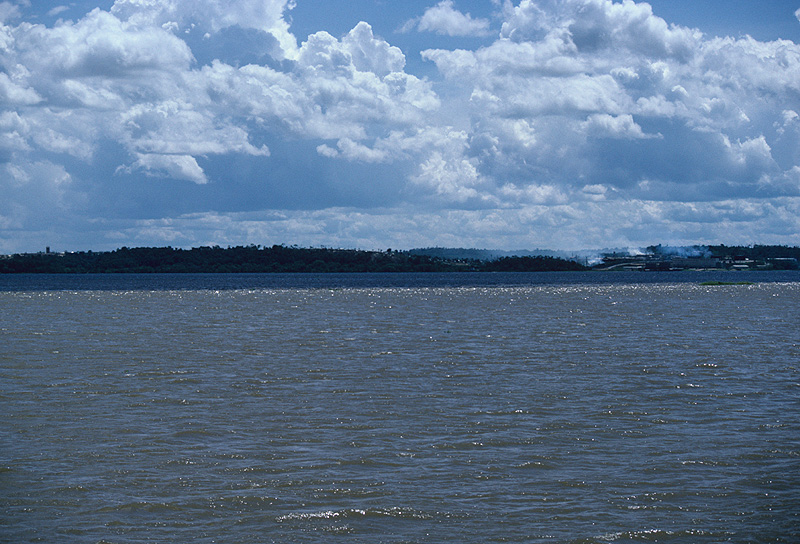 Source: WTL photograph© on site in the Amazon River Basin. Comment: This is a view of the confluence of the Rio Solimões (where the boat is from which this photo is being shot) and the Rio Negro (the dark, almost black water in the background). We are going to go up-river by entering the Rio Negro. Remember that, in Brazilian toponymy, the Amazon (i.e., Rio Amazonas) per se is only the name of the river at its lower stretch where it enters the Atlantic Ocean. For a series of photos showing the crossing from one river to the other, see: => Dois Rios Index. |