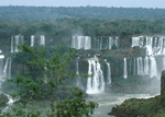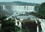 Source: WTL photograph© on site at the Iguaçu Falls (from the Brazilian side). Comment: The Cataratas do Iguaçu are one of the greatest natural wonders of the Earth, rivalling or even eclipsing Niagara Falls. Just as the latter falls mark an international boundary, the Iguaçu Falls are on the border of three countries: Brazil, Argentina, and, not far away, Paraguay. Not far, too, from these Falls is the Itaipú Dam (1975-1984) between Brazil and Paraguay. Itaipu is the largest hydroelectric plant in the world: 8 miles long and producing 27 billion kwh per year. This plant produces 80% of both Brazil's and Paraguay's electricity. |