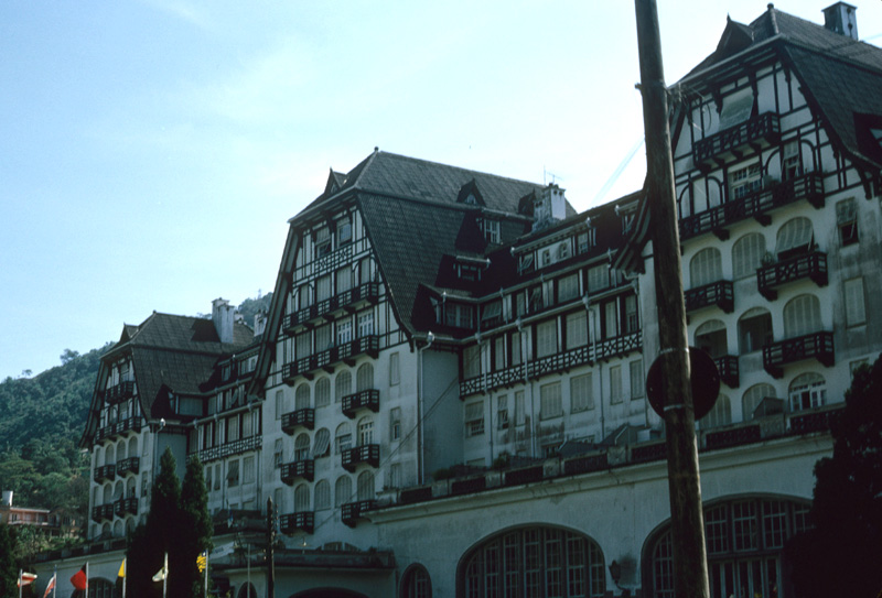 Source: WTL photograph© on site in Petrópolis. Comments: Here you see a giant tourist hotel in Petrópolis. The style you see is not Luso-Brazilian. Why? Well, Pedro II encouraged German farmers from the Rhine River region to settle on the Emperor's lands around Petrópolis. Hence, this pseudo-Alpine or Rhinelandish style. |