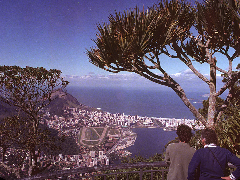 Source: WTL photograph© on site in Rio de Janeiro. Comment: Another view showing how glamorous Rio de Janeiro's setting is as seen from Corcovado. As you see, Rio's space is limited much like the physical locations of New York City and San Francisco. Hence, Rio de Janeiro is constantly modernizing rather than preserving an old colonial look. History: In 1808, Napoleon Bonaparte invaded Portugal. This French invasion caused the Portuguese royal family and entire court to abandon Lisbon and to sail to Rio de Janeiro in Brazil. Hence, Rio became the capital of Portugal's worldwide empire. In 1822, with the French gone from Portugal, the king of the Portuguese empire returned to Portugal and simultaneously and peacefully granted Brazil its independence under the king's son. Thus, Rio became (independent) Brazil's capital. In 1889, Brazil ended its monarchy and became a republic with Rio as the Republic of Brazil's capital. As mentioned earlier, Brazil moved its capital from Rio to Brasília in 1960. |