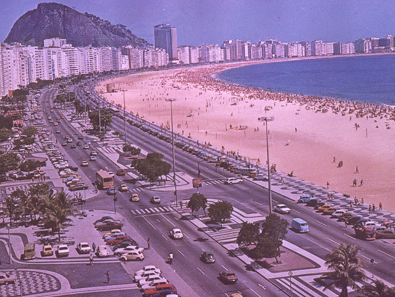 Source: Old tourist photograph of the famous Praia Copacabana (Copacabana Beach), Rio de Janeiro.