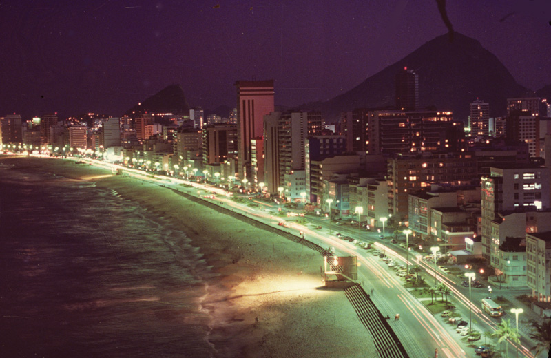 Comment: A night view of Copacabana Beach with Corcovado and the Parque Tijuca in the background.