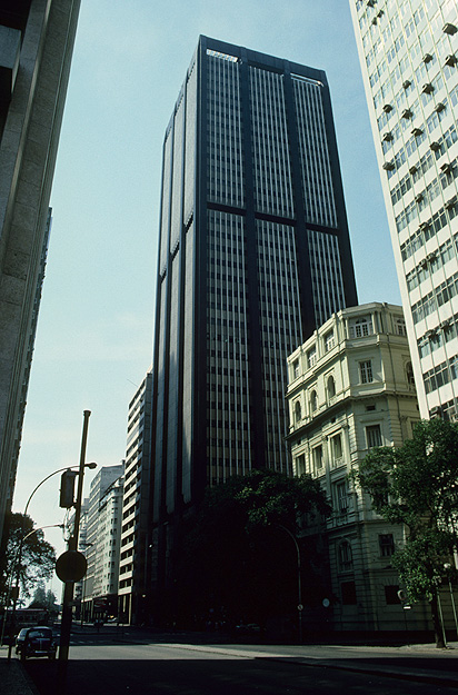 Source: WTL photograph© on site in Rio de Janeiro. Comment: This image illustrates the modern elements one sees in major urban centers: a proud and beautiful early twentieth-century building dwarfed by a hyper-modern skyscraper. This image illustrates the degree of modern capital prosperity in the service of beautiful modern architecture. Plus we also see the preservation of early modern architecture, which, in a way, gains by being set off against the background of the super skyscraper behind it. |
