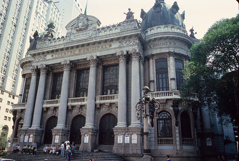 Source: WTL photograph© on site in Rio de Janeiro. Comment: The Teatro Municipal presents theater, symphony orchestras, opera, ballet, and other classical performing arts. Compare this building to the old Paris Opera house: see => Rio #21a. |