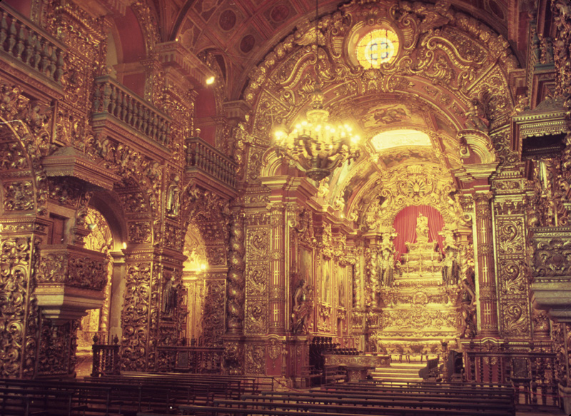 Source: WTL photograph© on site in Rio de Janeiro. Comments: Interior of the Igreja de São Francisco da Penitência (Church of St. Francis of Penitence), which was built between 1657 and 1772. Humanities question: (a) During what period was this church built? (b) What is this style called? (c) What are the characteristics of this style? (d) What does this church tell us about the relative prosperity of the Rio de Janeiro region of Brazil at that time and nowadays? |