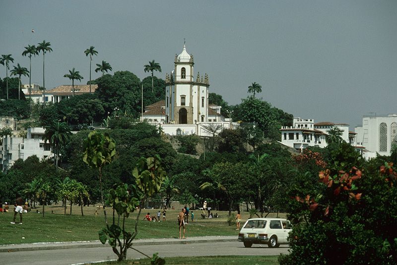 Source: WTL photograph© on site in Rio de Janeiro. Comment: This is a view of the church of Nossa Senhora da Glória do Outeiro (Our Lady of Glory of the Overlook). This small architectural gem of a church overlooks Guanabara Bay. It was built in 1720 with its white walls and classic design. This church is in the Brazilian baroque style. Compare it to the church in Ouro Preto. |