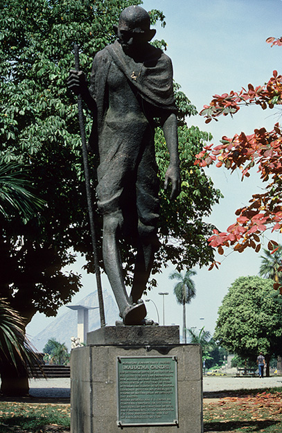 Source: WTL photograph© on site in Rio de Janeiro. Comment: Rio is not only a favored destination by visitors and business people from all over the world, but it is also a fully international city. An example of such internationalism is this statue to Mahatma Gandhi. |