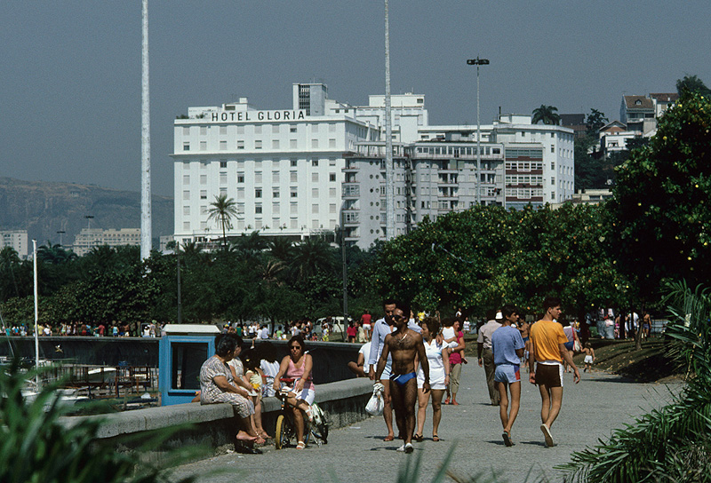 Source: WTL photograph© on site in Rio de Janeiro. Comment: Here is a typical scene on the walkway along the Enseada da Glória (Glory Bay) just above the Marina da Glória, with the hotel by the same name overlooking this magnificent location. |