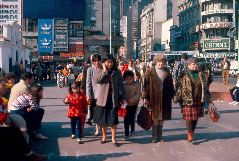 Source: See Buenos Aires Index. Image: Citizens of in downtown Buenos Aires on a typical winter day. Comments: Given what is shown in the image it should come as no surprise that Buenos Aires is home to a great opera house, movie theaters, symphony orchestras, many art museums, modern theater, public libraries, cultural associations, world-class zoo, botanical garden, parks, plazas, churches, mosques, synagogues, music venues (from jazz to tango), schools, universities, and major commerce and industry. The people shown here are walking along the famous Avenida Nueve de Julio (Argentina's independence day), which is the widest city avenue in the world. Humanities question: What do you observe in this photo that supports the comments above? |