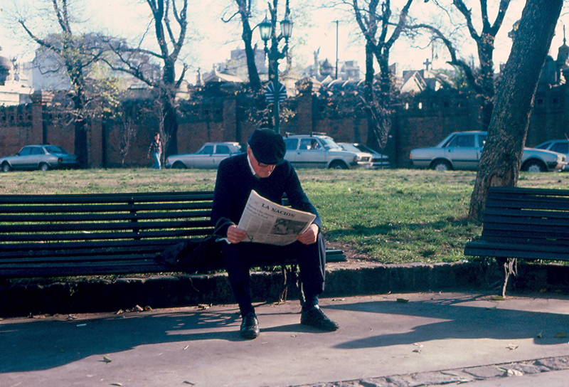 Comments: La Nación is Argentina's most famous newspaper. Politically, its editorial position is generally center-right. In 1945, it changed its name from La Nación Argentina (i.e., the silver nation), which had been founded in 1870 by Argentina's president Bartolomé Mitre. As a national newpaper, its share of Argentina's reading public stands at about 30%. Throughout the years many famous Spanish-speaking intellectuals have been published in its pages, including José Martí (Cuba), Miguel de Unamuno (Spain), Eduardo Mallea (Argentina), José Ortega y Gasset (Spain), Rubén Darío (Nicaragua), and Jorge Luis Borges (Argentina), whom we shall see and explore at the end of this digital lecture series on on Buenos Aires. To link to this newspaper, see: => La Nación.