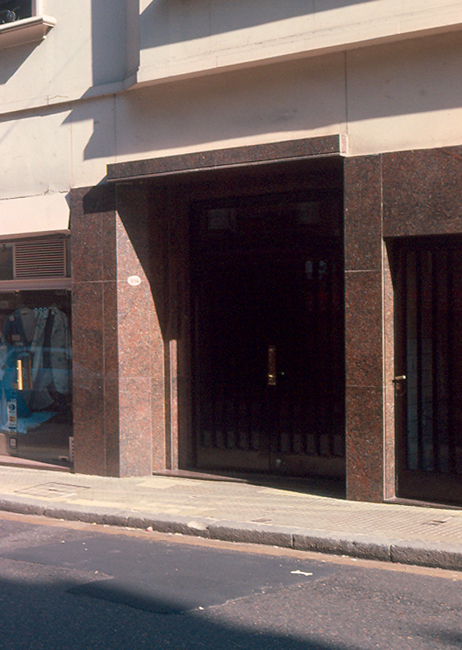 Source: See Buenos Aires Index. Image: Entrance to the apartment building in which Borges lived at Maipú, 8. Embedded image: For a photograph of the professor-photographer, who asked a passer-by to snap a photo of him standing in front of this building, see: => Buenos Aires #18c. |