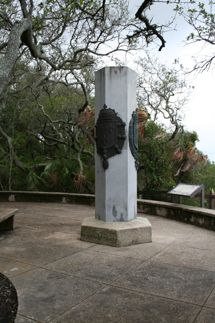 Source: Photo of the contemporary monument taken by WTL© at Fort Caroline. Comments: In a moment you will be able to read the plaques affixed to the monument. For Jacques LeMoyne's painting of the monument, see the following images: (1) LeMoyne/DeBry #4; (2) LeMoyne/DeBry # 5. Humanities question: Compare and contrast the modern monument with images with the sixteenth-century images by LeMoyne/DeBry.. |